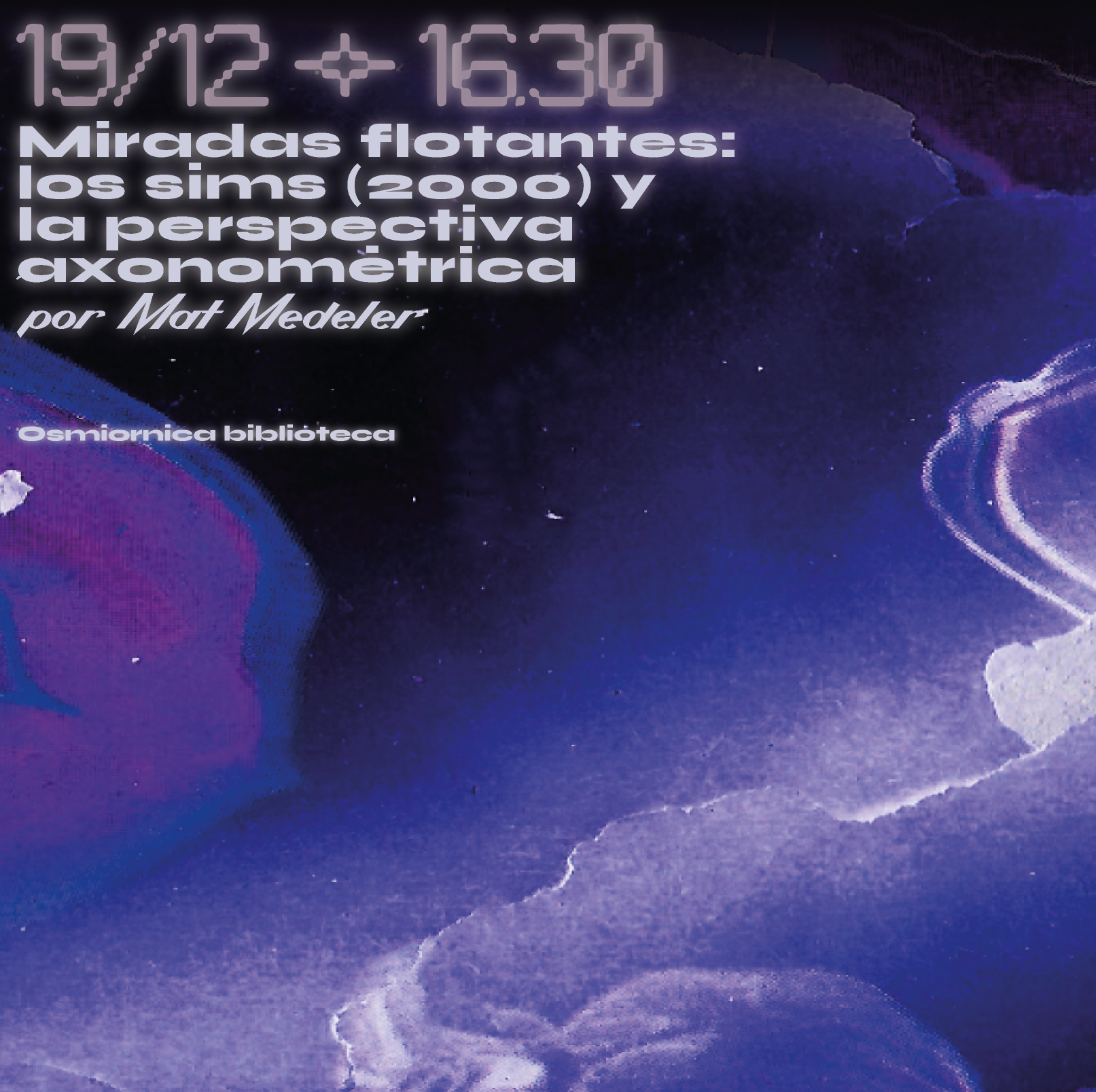 "Miradas flotantes: los Sims(2000) y la perspectiva axonométrica" exposición a cargo de Mat Medeler sobre uno de los videojuegos que cambió la perspectiva y sus abordajes intelectuales y consecuencias directas...